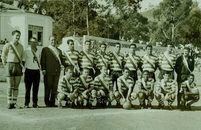 Ilustro esta pequena nota de Maputo com uma fotografia de 1960 do Sporting de Lourenço Marques, onde alinhava na altura um jovem chamado Eusébio. Lembrei-me disto porque ontem, ao regressar de Marracuene, onde participei numa feira de atividades económicas, deparei-me com uma conversa típica de portugueses fora de casa. Os meus companheiros de viagem estavam todos divertidos a tentar convencer o nosso motorista, de seu nome Eusébio, a mudar do "outro clube" para o Sporting, em troca de uma camisola oficial verde e branca. Tentado, o jovem acabou por ceder e parece que, mesmo sendo maior e vacinado, vai mudar de clube. Nem que seja por uns dias, enquanto a comitiva cá está. A "estória" vale o que vale e não é sequer motivo para falar muito mais do passado. Só serve para termos a noção de que aqui, como em todo o lado, somos tão grandes ou maiores do que o "outro clube". Não precisamos de conquistar os fracos de espírito, precisamos de vitórias e de ter sempre em mente este lema: "Esforço, Devoção e Glória, eis o Sporting Clube de Portugal".