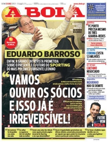 « Não fui inconsciente quando marquei o Conselho Leonino. É preciso que o Sporting comece a discutir o presente e o seu futuro, a começar pelos orgãos sociais. Estou muito preocupado com o futuro de meu clube. Os dirigentes têm de repensar o presente e o futuro porque a situação é mais complicada do que podemos pensar. A nível financeiro a estratégia está a esvair-se, a situação é trágica e o financiamento do clube pode estar em causa pelas dificuldades dos bancos. A estratégia desportiva também falhou. Domingos, Sá Pinto e agora um grande sportinguista à frente da equipa, mas não será por esse caminho que o Sporting ficará mais forte. Basta recordar as suas palavras após o clássico. O presidente terá o nosso apoio se conseguir uma nova estratégia. Assim, podemos ser condenados a desaparecer, pois o que está em jogo é o futuro do nosso clube. E a SAD está a conduzir o nosso clube para uma tragédia ».